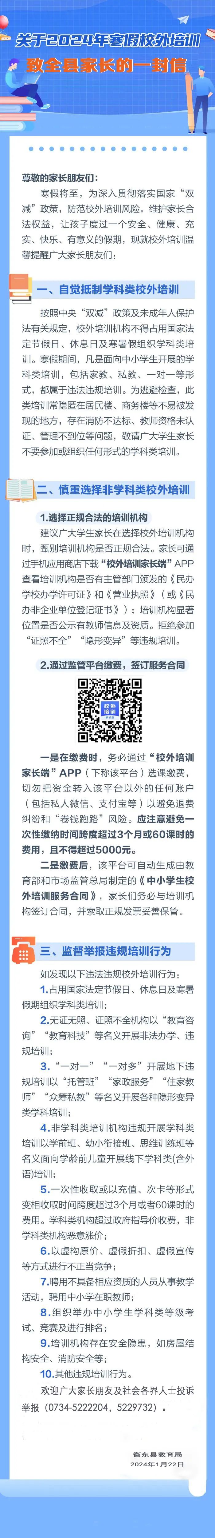 關于2024年寒假校外培訓致全縣家長的一封信