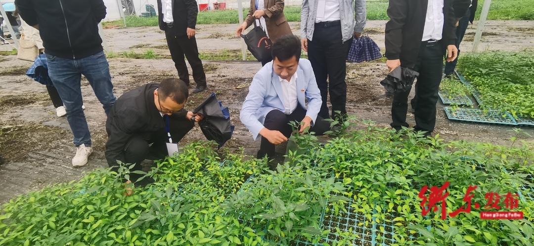 隨后,學員們來到三樟鎮的塔沖村參觀黃貢椒種植基地,該基地是由湖南聚味堂食品有限公司經營,公司采取“公司+基地+合作社+農戶”的經營模式,大力推廣黃貢椒種植,通過簽訂購銷合同、訂單合同等方式,示范帶動三樟鎮塔沖村多家合作社、家庭農場及農戶從事黃貢椒 種植生產。截至目前,全村黃貢椒種植面積近千畝,其中聚味堂 三樟黃貢椒集中育苗基地占地 700 余畝,建成連 棟大棚 6 個、小棚 8 個。2023 年以來,育苗基地培育辣椒苗超 過 400 萬株,育苗成本低于 0.2 元/株,可供 5000 余畝大田面積移栽,綜合產值高達上百萬元,直接和間接帶動季節性農民工就 業 60 余人,有力促進了農村勞動力就近就地就業增收。