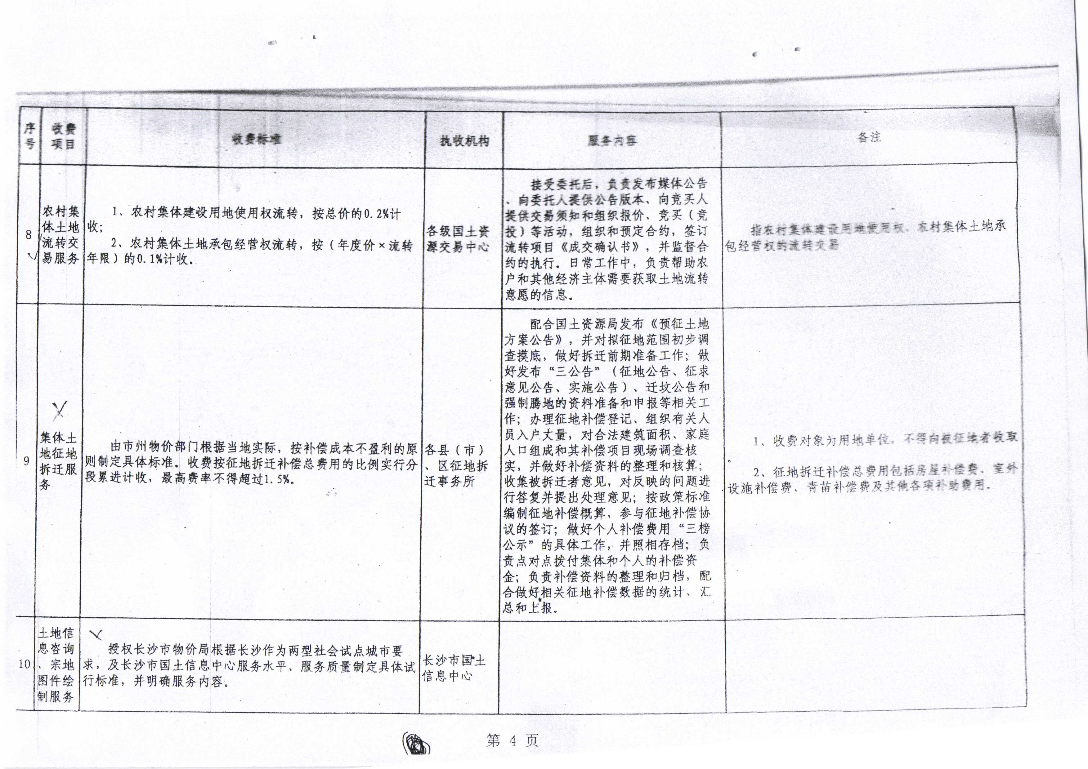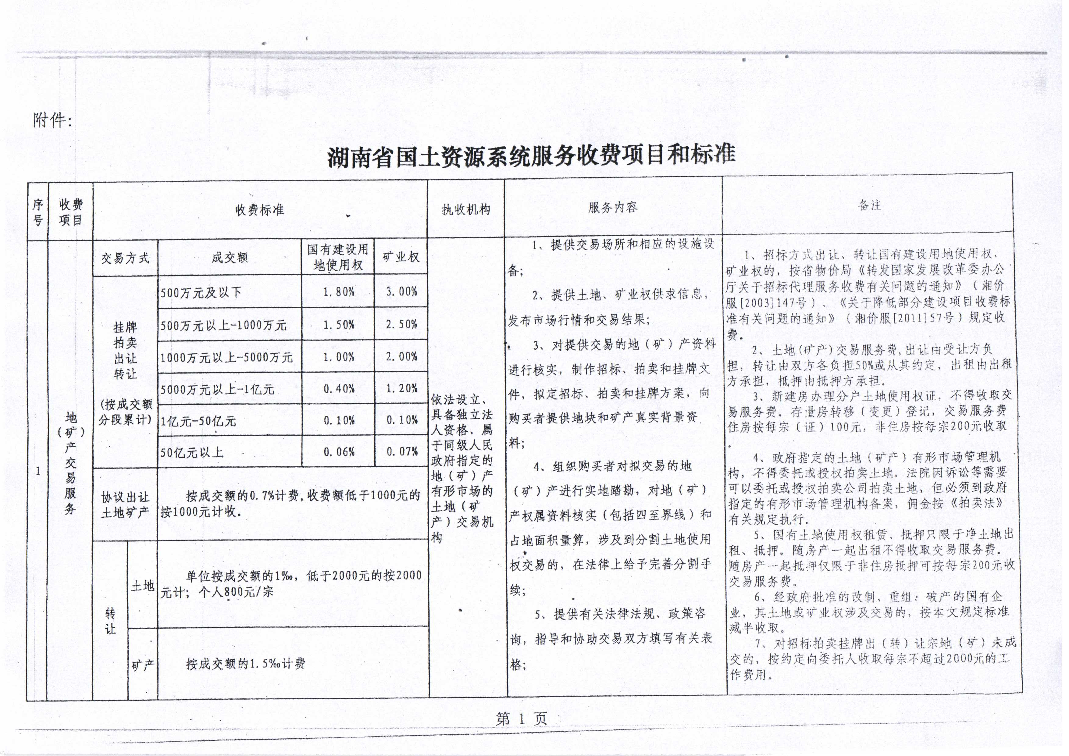 湖南省國土資源系統服務收費項目和標準
