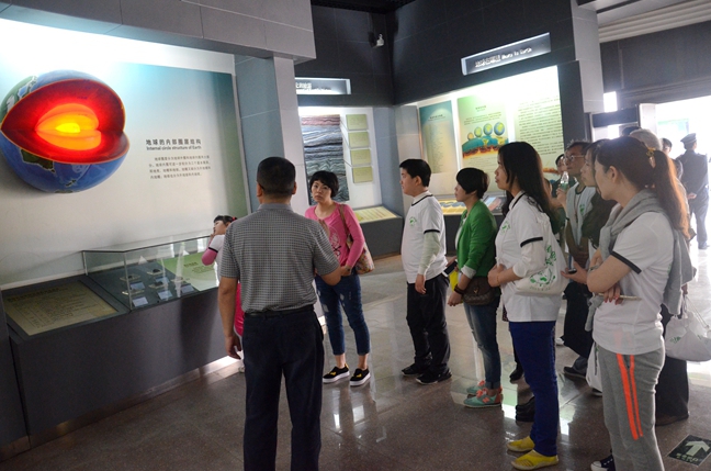 (在湖南省地質博物館地球廳內參觀的志愿者們)