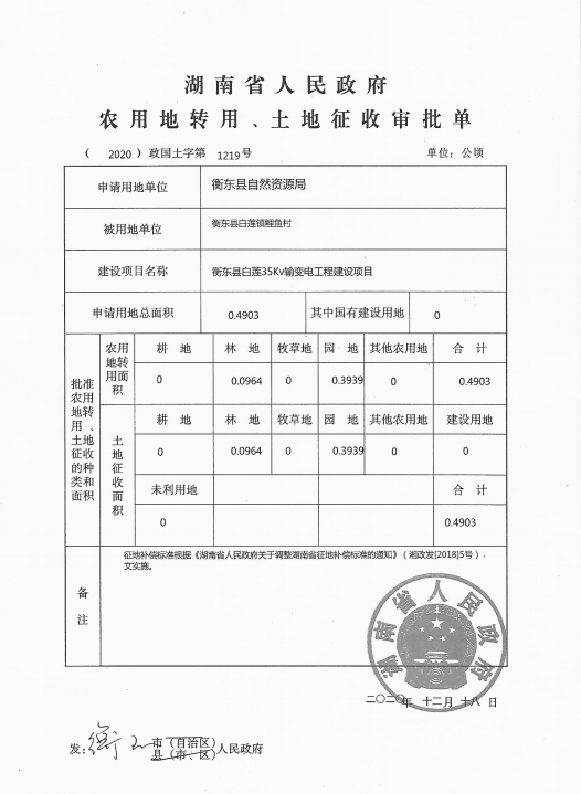 衡東縣白蓮35Kv輸變電工程建設(shè)項目