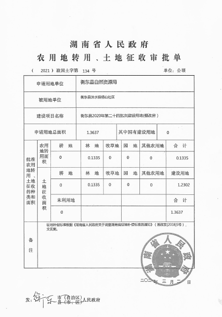 衡東縣2020年第二十四批次建設(shè)用地(2021)政國(guó)土字第134號(hào)