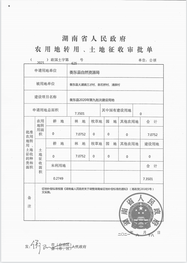 衡東縣2020年第九批次建設(shè)用地