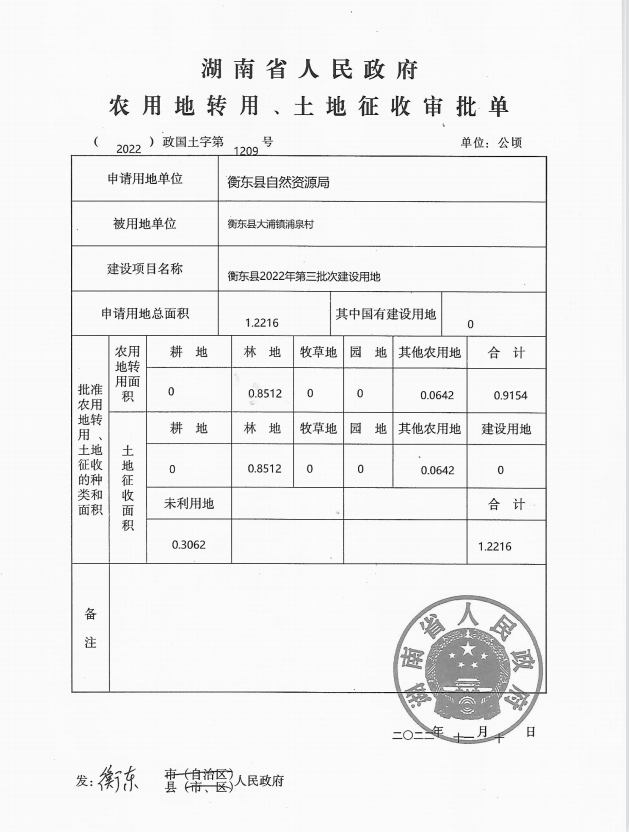 衡東縣2022年第三批次建設用地