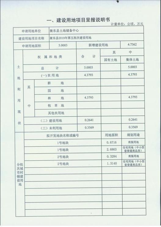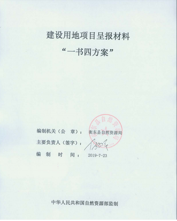 衡東縣2019年第五批次城鎮(zhèn)建設(shè)用地項目呈報材料“一書四方案”