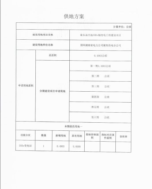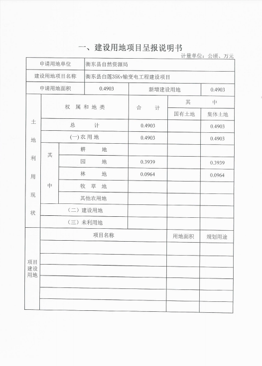衡東縣白蓮35Kv輸變電工程建設項目呈報材料“一書四方案”