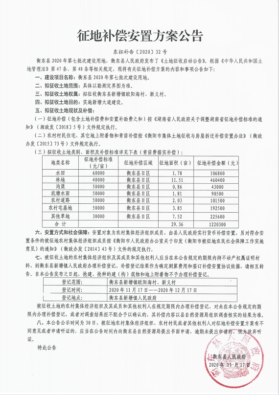 征地補(bǔ)償安置方案公告【東征補(bǔ)告(2020)32號(hào)】