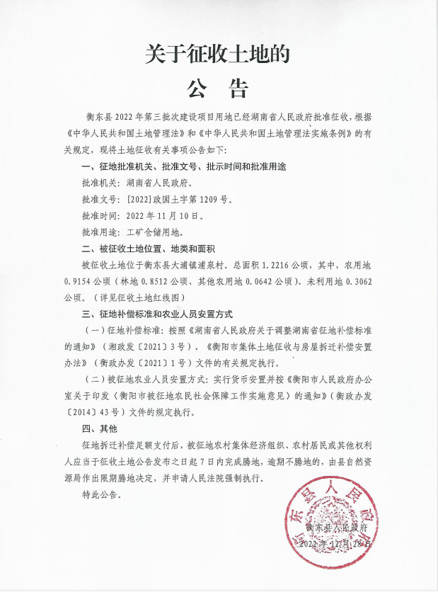 關于征收土地的公告【(2022)政圖土字第1209號】