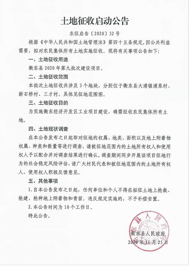 土地征收啟動公告【東征啟告(2020)32號】
