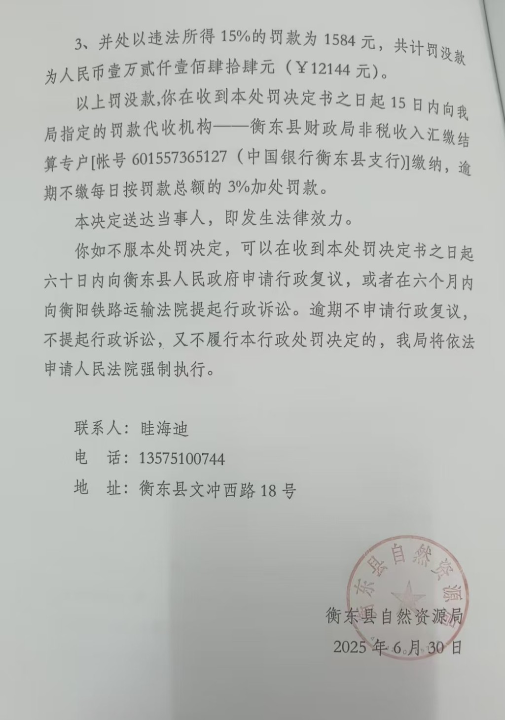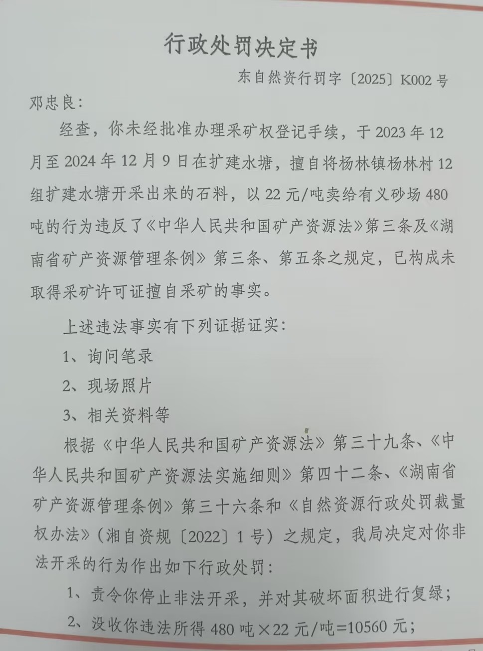 行政處罰決定書