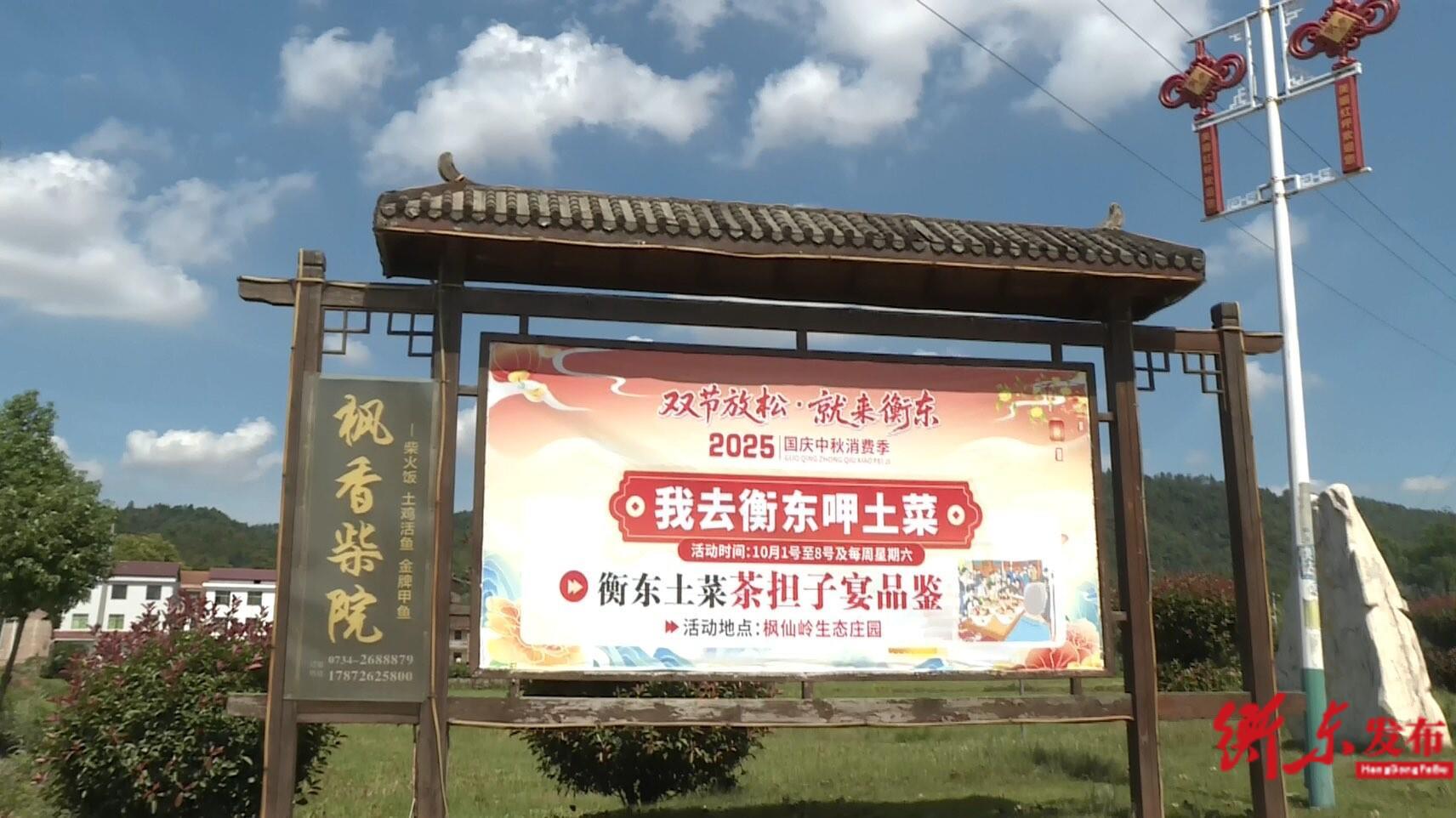 衡東融媒10月3日訊(融媒體記者 蘇偉哲) 10月3日,正值國慶中秋假期,由衡東縣土菜發展服務中心承辦的“我去衡東呷土菜”活動熱度不減,其中楓仙嶺生態莊園的土菜茶擔子宴,憑借獨特的宴席形式與地道風味,成為當日游客打卡的熱門之選。