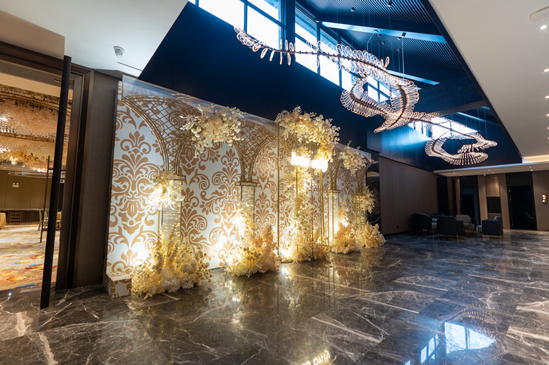 酒店總建筑面積24000m2,是按照國(guó)際四星級(jí)標(biāo)準(zhǔn)打造的綜合型豪華酒店,集客房、宴會(huì)、餐飲、休閑娛樂(lè)、商務(wù)旅游、會(huì)議洽談、土菜展示、戶(hù)外婚慶于一體的多功能豪華酒店。