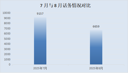 2025年8月,12345熱線話務總數為6659個,非話務受理渠道(含省長信箱、書記市長信箱、國家政務服務平臺、中國政府網、書記縣長信箱、政協云、湘易辦、省級12345熱線等)受理各類訴求83件,辦結57件。