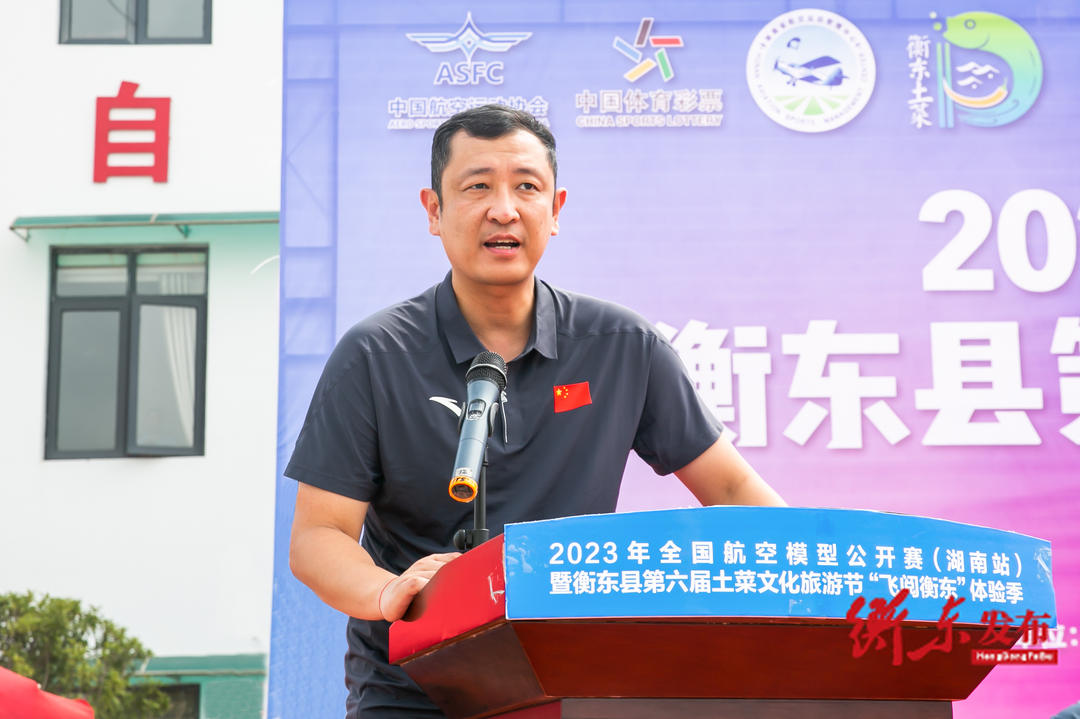 衡東融媒9月16日訊(融媒體記者 廖仲國 曹莉)金風送爽,秋意醉人。9月16日上午,全國航空模型公開賽(湖南站)暨衡東縣第六屆土菜文化旅游節“飛閱衡東”體驗季活動在大浦機場盛大開幕。國家體育總局航管中心運動三部副主任劉峰宣布開幕,國家體育總局安陽航空運動學校校長張俊銘,省體育局二級巡視員傅力強,市政協副主席葉玉泉,市委宣傳部二級巡視員成新平,縣委副書記、縣長蔣崇華出席開幕式并觀看比賽。
