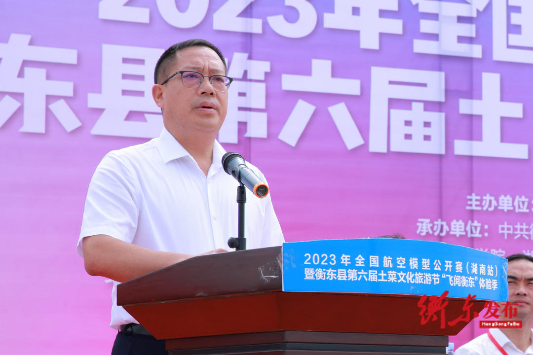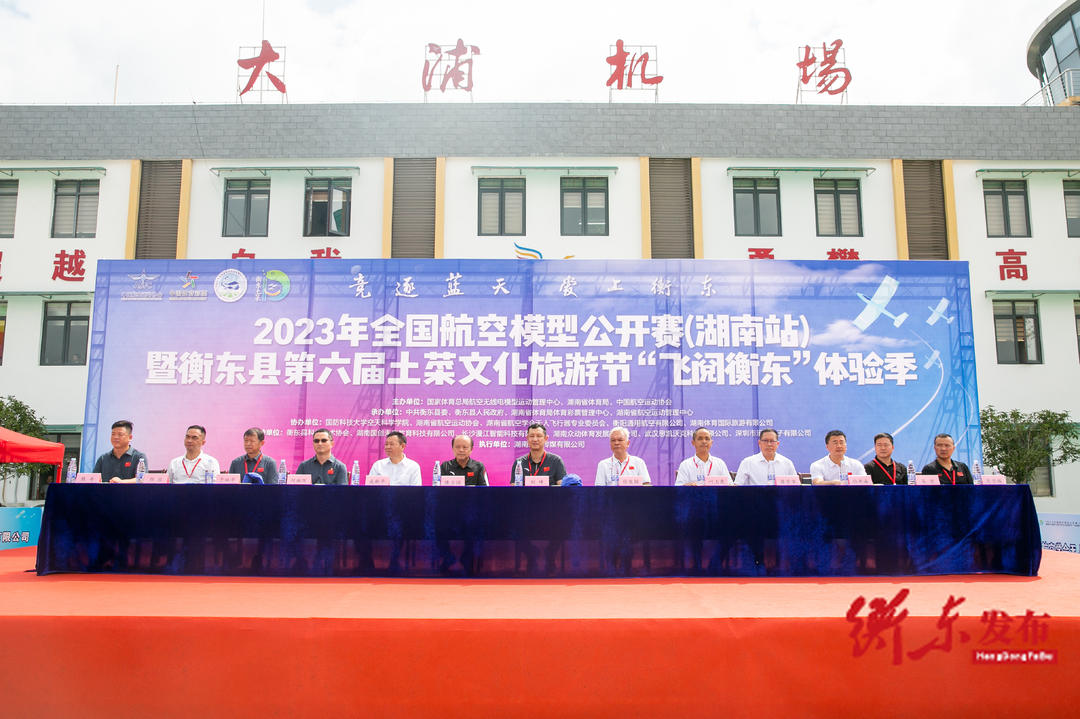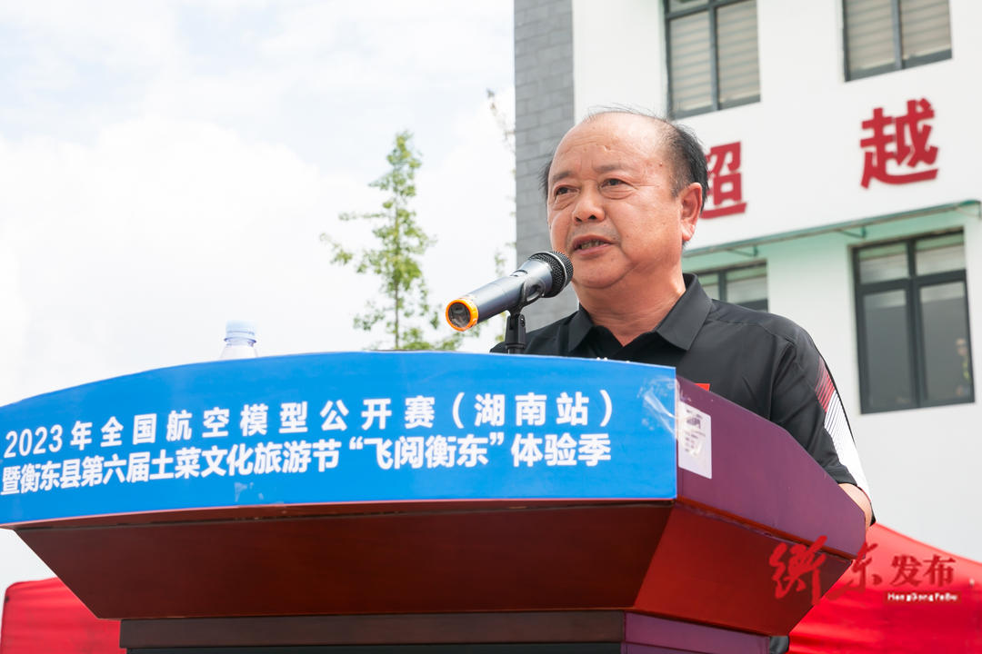 圖:2023年全國航空模型公開賽(湖南站)暨衡東縣第六屆土菜文化旅游節“飛閱衡東”體驗季開幕式現場
