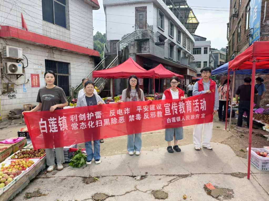 "遇到陌生人要主動說不;,記住爸爸媽媽的電話號碼......."6月3日,白蓮鎮蓮花社區集市上,志愿者通過情景劇向孩子們演示自我保護技巧。當天, 白蓮司法所聯合綜治、民政、婦聯等部門, 以"利劍護蕾常態化,掃黑反詐不落下"為主題,開展了一場別開生面的法治宣傳活動,吸引數百名居民參與。