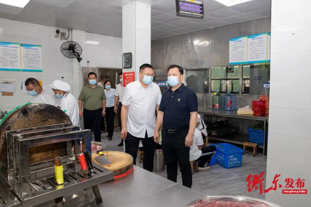 譚建華一行先后前往學校校舍改造施工現場、食堂等重點區域,通過實地查看、聽取匯報等方式,全面了解校舍改造工程進度及“校園餐”食材采購渠道、食品加工流程、衛生標準執行情況,并深入了解校服采購、教輔征訂的具體操作流程與監督管理機制。譚建華強調,“校園餐”質量直接關系學生身體健康和成長發展,是群眾高度關注的民生焦點。各責任單位必須嚴格落實食品安全主體責任,從食材源頭把控質量,確保食材新鮮、衛生、安全,切實為學生提供營養均衡、安全放心的餐食。