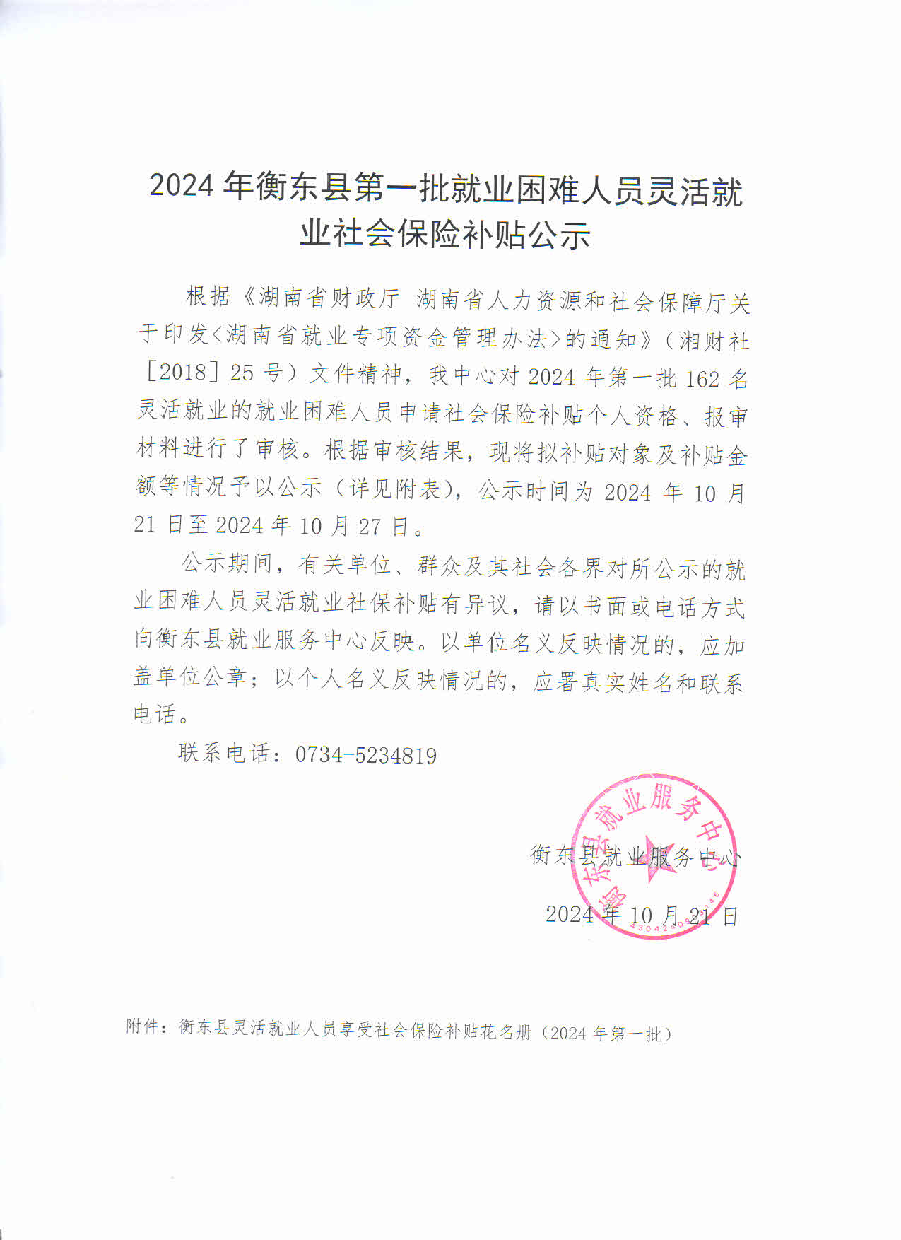 附件:衡東縣靈活就業人員享受社會保險補貼花名冊(2024年第一批)