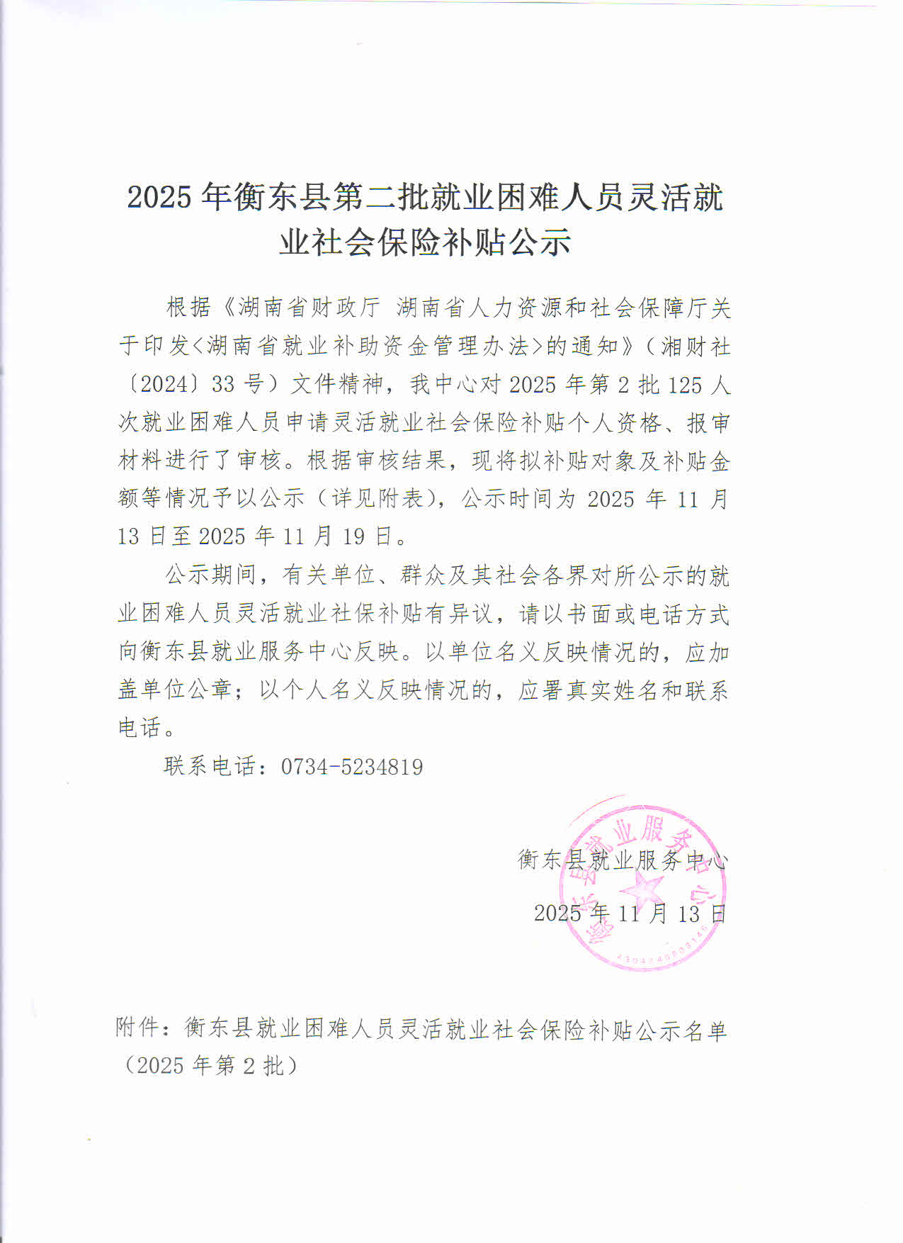 附件:衡東縣就業(yè)困難人員靈活就業(yè)社會保險補貼公示名單(2025年第2批)