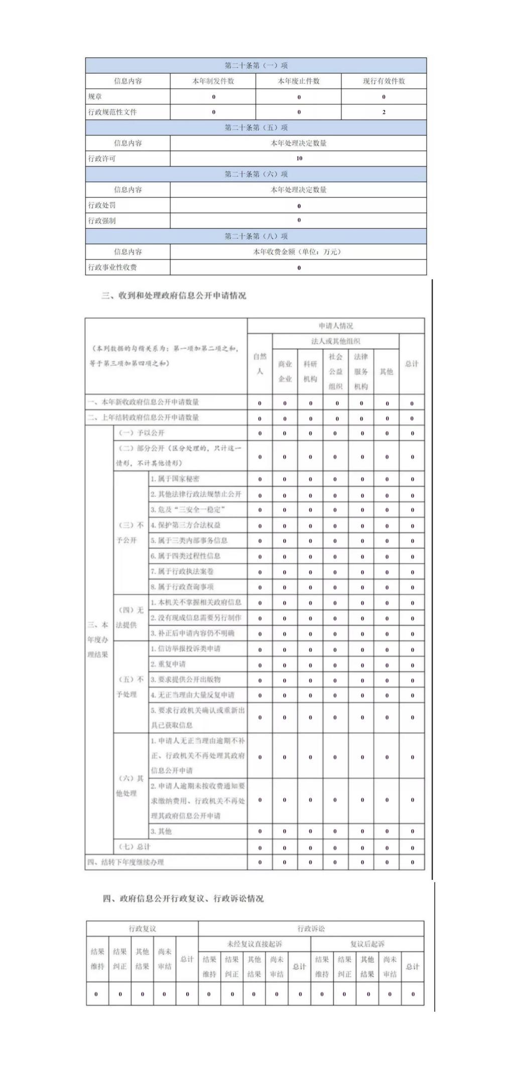 編制說(shuō)明:本年度報(bào)告根據(jù)國(guó)家、省、市政府信息公開(kāi)相關(guān)法律、法規(guī)的規(guī)定編制,內(nèi)容包括:總體情況、行政機(jī)關(guān)主動(dòng)公開(kāi)政府信息情況、行政機(jī)關(guān)收到和處理政府信息公開(kāi)申請(qǐng)情況、因政府信息公開(kāi)工作被申請(qǐng)行政復(fù)議、提起行政訴訟情況、政府信息公開(kāi)工作存在的主要問(wèn)題及改進(jìn)情況、其他需要報(bào)告的事項(xiàng)等六項(xiàng)內(nèi)容。本年度報(bào)告中所列數(shù)據(jù)的統(tǒng)計(jì)期限自2022年1月1日起至2022年12月31日止。
