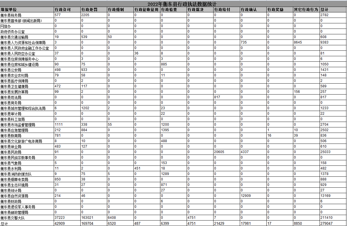 2022年衡東縣行政執法數據統計