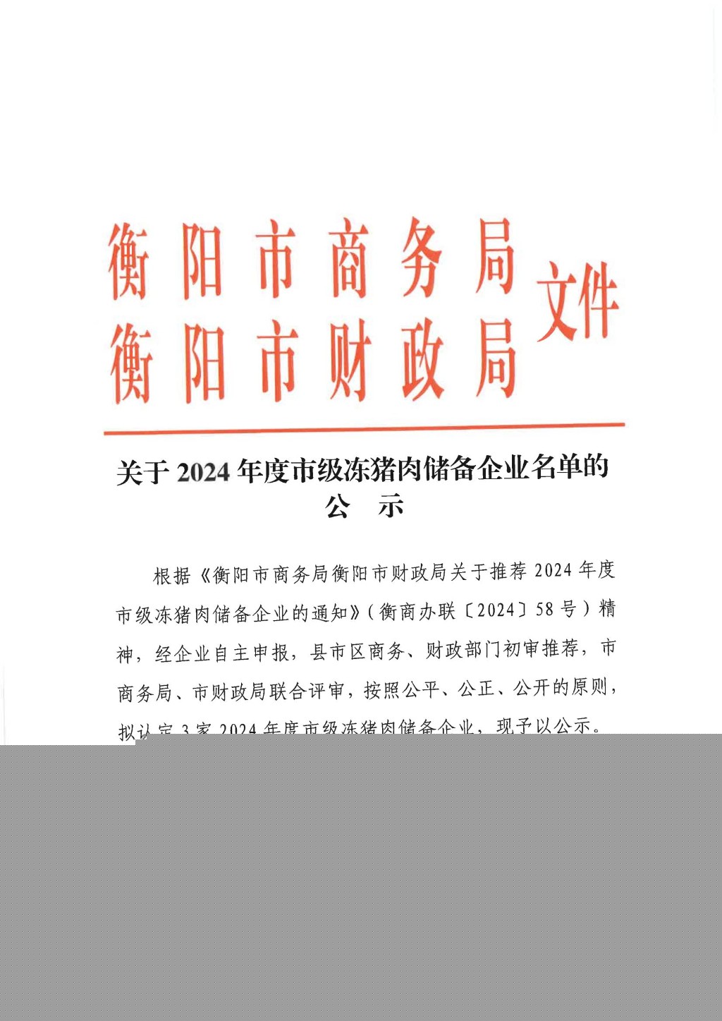 關于2024年度市級凍豬肉儲備企業名單的公示